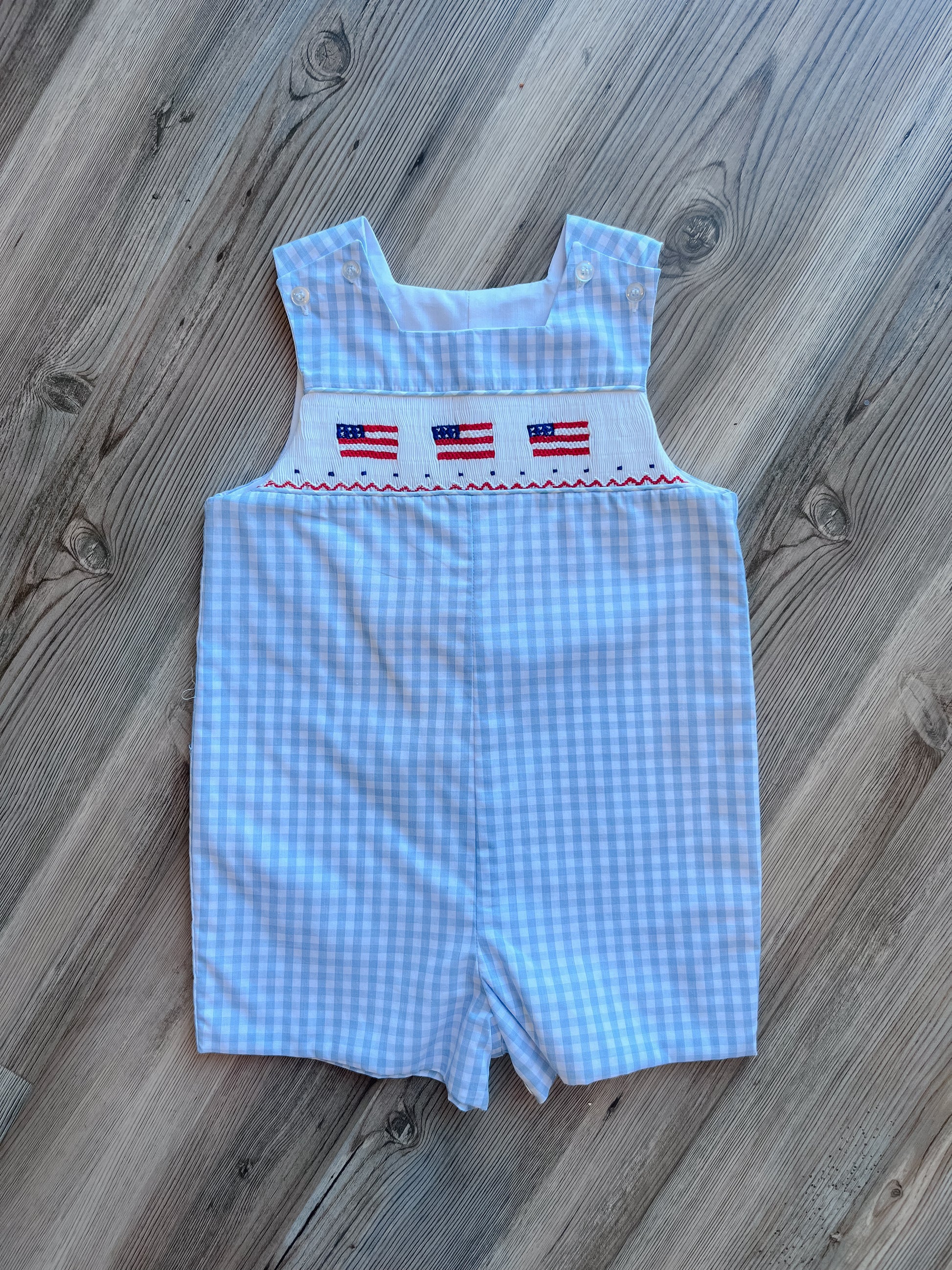Dress to celebrate in this adorable gingham bubble. Made in extra-soft fabric with snap buttons at the gusset for lightning-fast diaper changes, the timeless smocked panel with embroidered flags is the perfect finishing touch to celebrate in style.