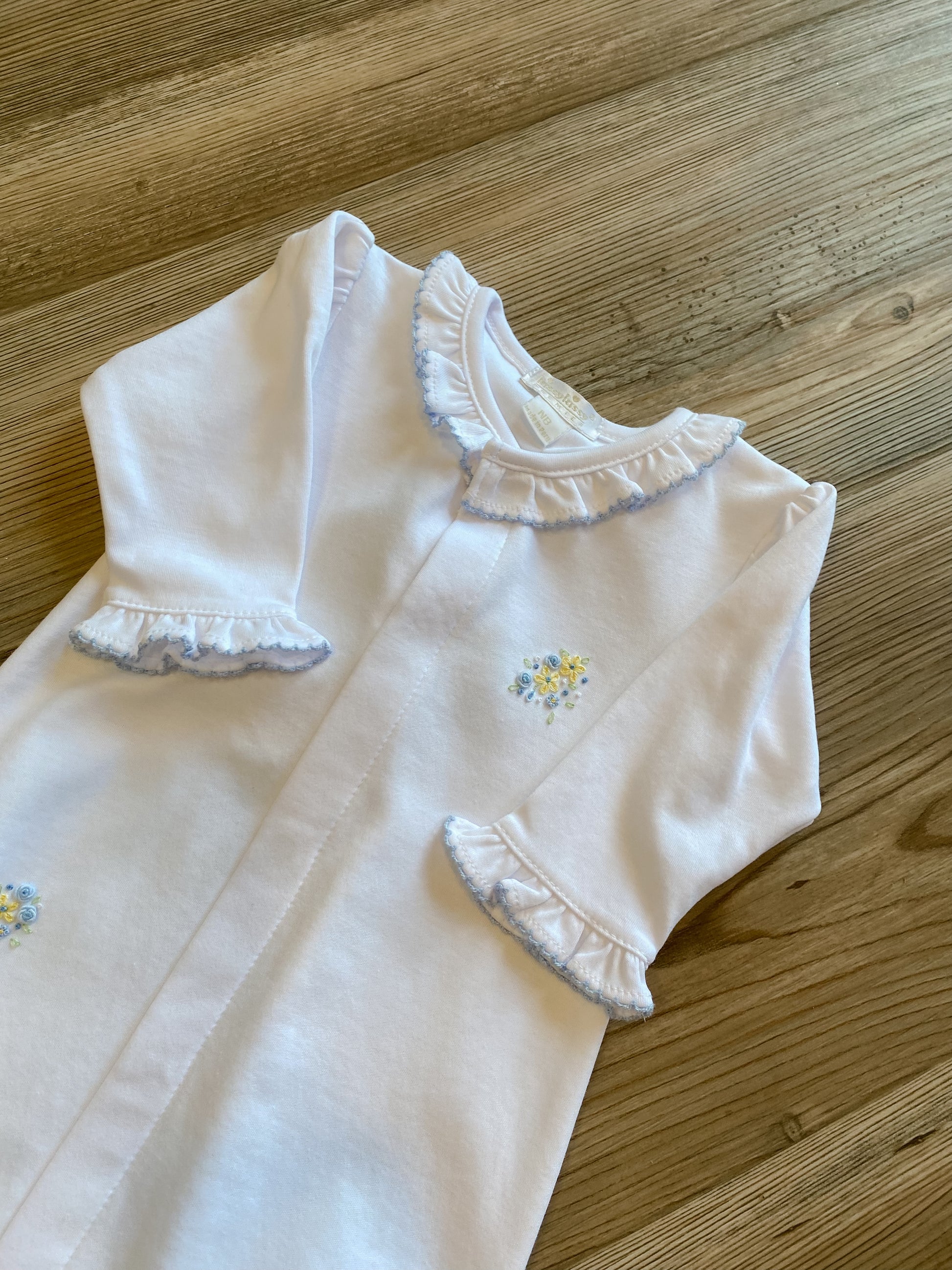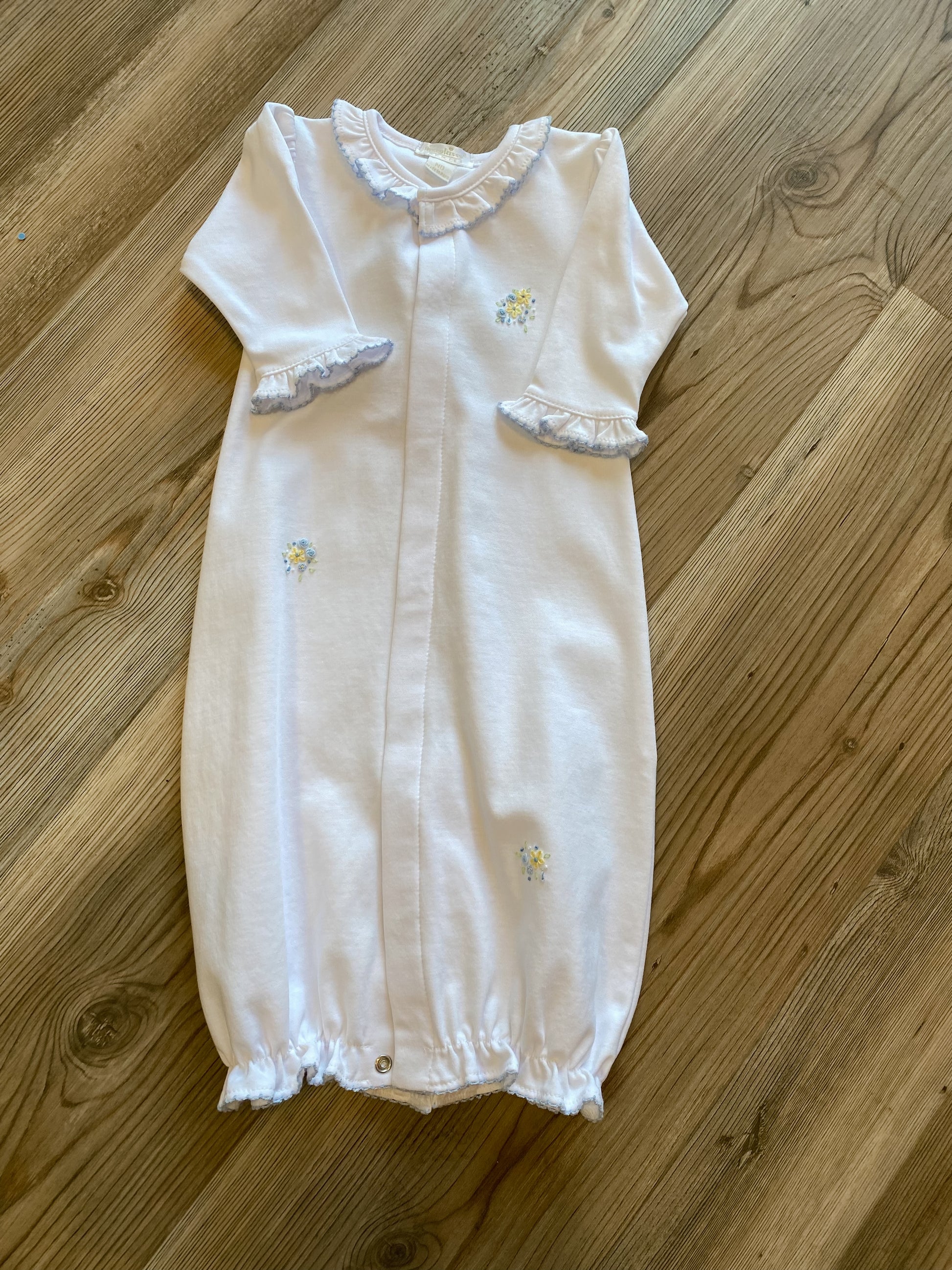 - Snaps from neckline to feet