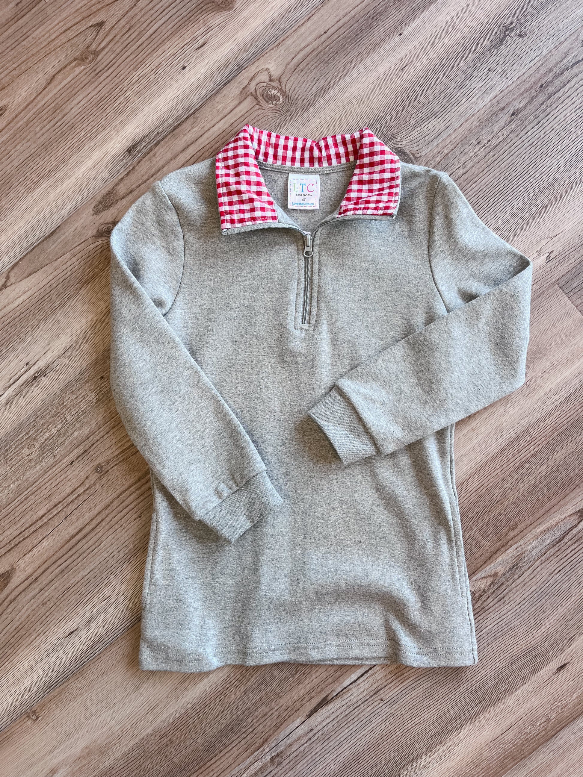 Stay cozy and stylish with our LTC ¼ zip pullover. Made of 100 percent interlock cotton, this pullover is comfortable and versatile. It features a 1/4 zip design, hidden pockets, and a double-stitched hem for durability. The ribbed cuffs on the sleeves add a trendy touch. The inside of the collar provides a pop of color, adding a special detail to this pullover. Mix and match it with our various bottoms for endless outfit options.